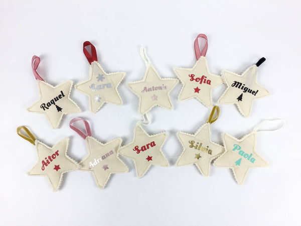 Lo puedes personalizar con el nombre que quieras , elegir el color del vinilo , elegir el diseño entre estrella,arbol o copos de nieve y ademas podras elegir el color del lazo .